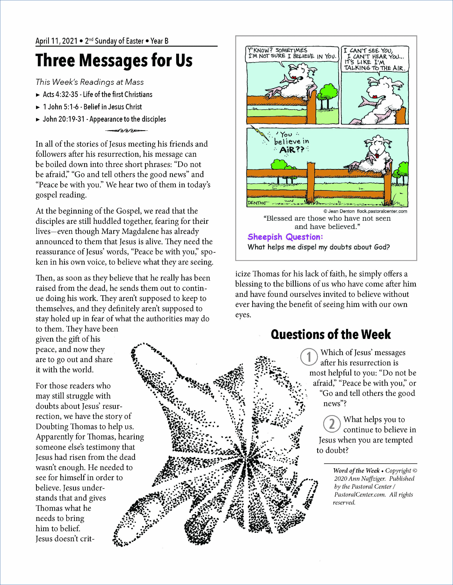 SECOND SUNDAY OF EASTER : DIVINE MERCY ~ APRIL 11, 2021
