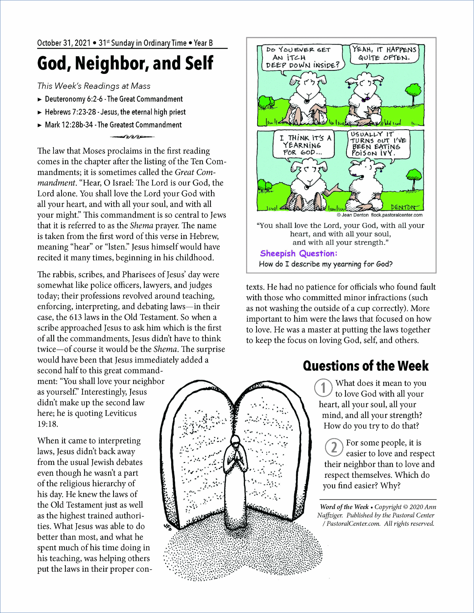 THIRTY-FIRST SUNDAY IN ORDINARY TIME ~ OCTOBER 31, 2021