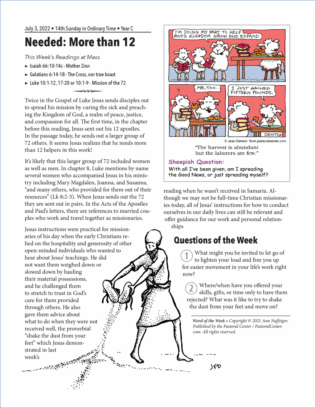 FOURTEENTH SUNDAY IN ORDINARY TIME ~ JULY 3, 2022