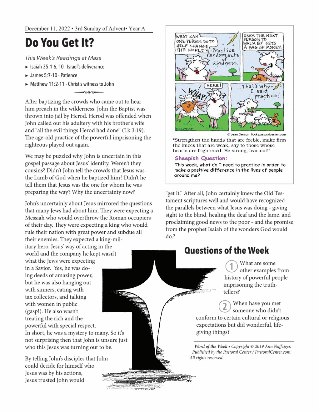THIRD SUNDAY OF ADVENT ~ DECEMBER 11, 2022