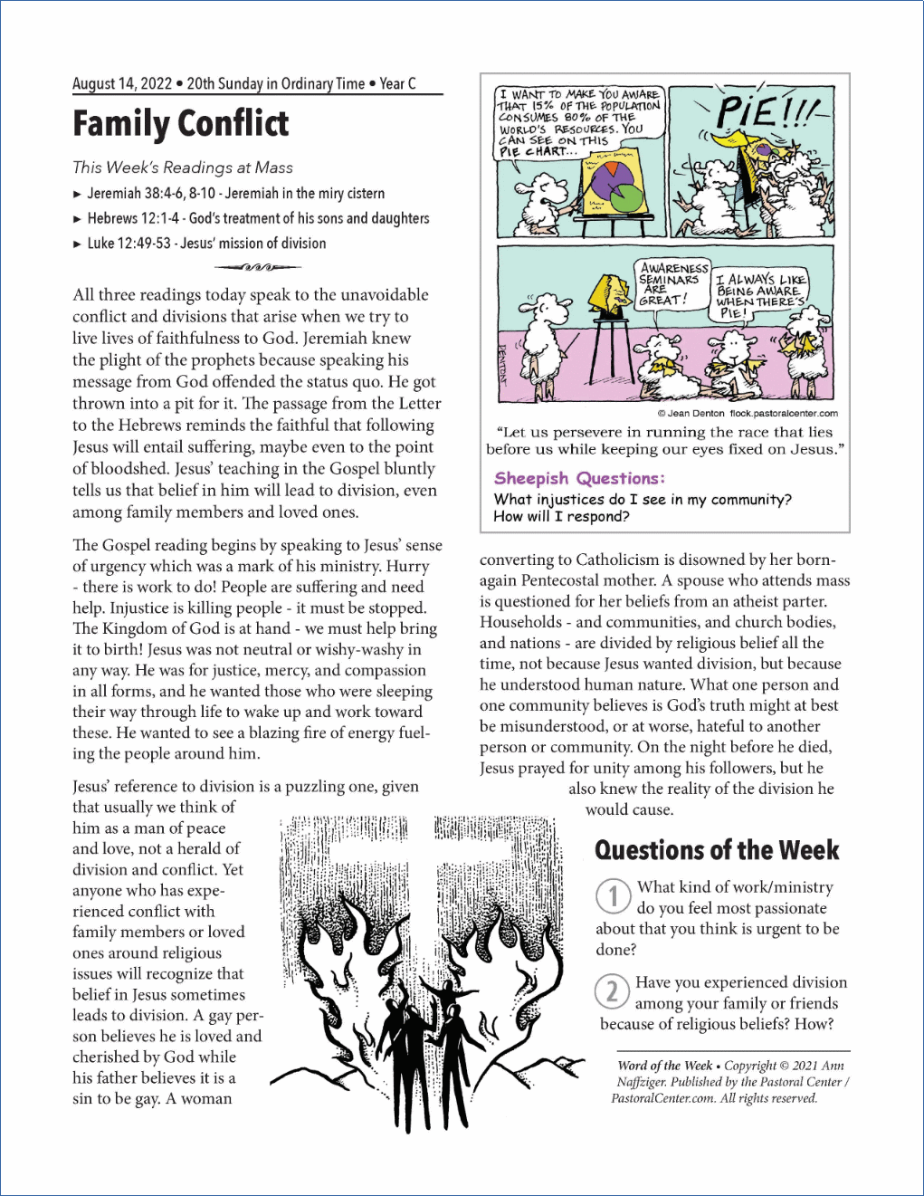 TWENTIETH SUNDAY IN ORDINARY TIME ~ AUGUST 14, 2022