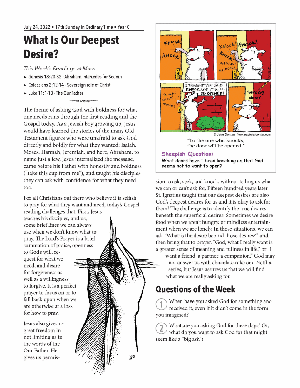 SEVENTEENTH SUNDAY IN ORDINARY TIME ~ JULY 24, 2022